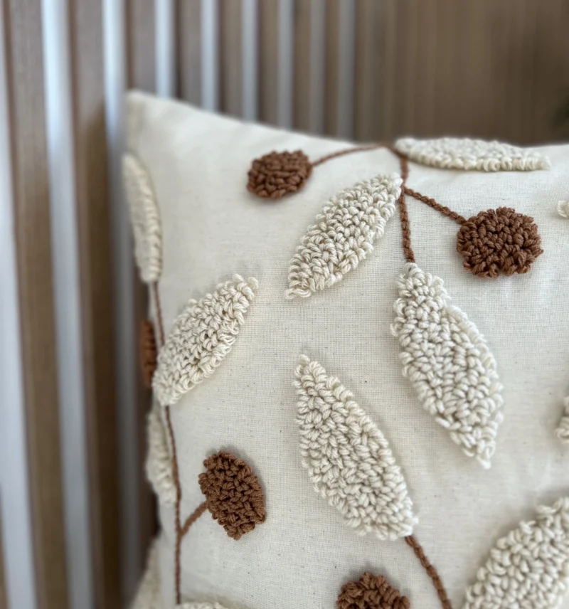 Bring natural elegance and texture into your home with this Handmade Linen Punch Pillow Cover. Made from high-quality linen fabric, this cushion cover is decorated with unique punch embroidery in beige and brown tones, creating a stylish 3D textured design. Perfect for boho, rustic, or modern interiors.